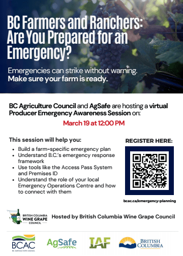 March 19, 2026 – 12:00 – 1:00 – BCAC & AgSafe, Producer Emergency Awareness Session