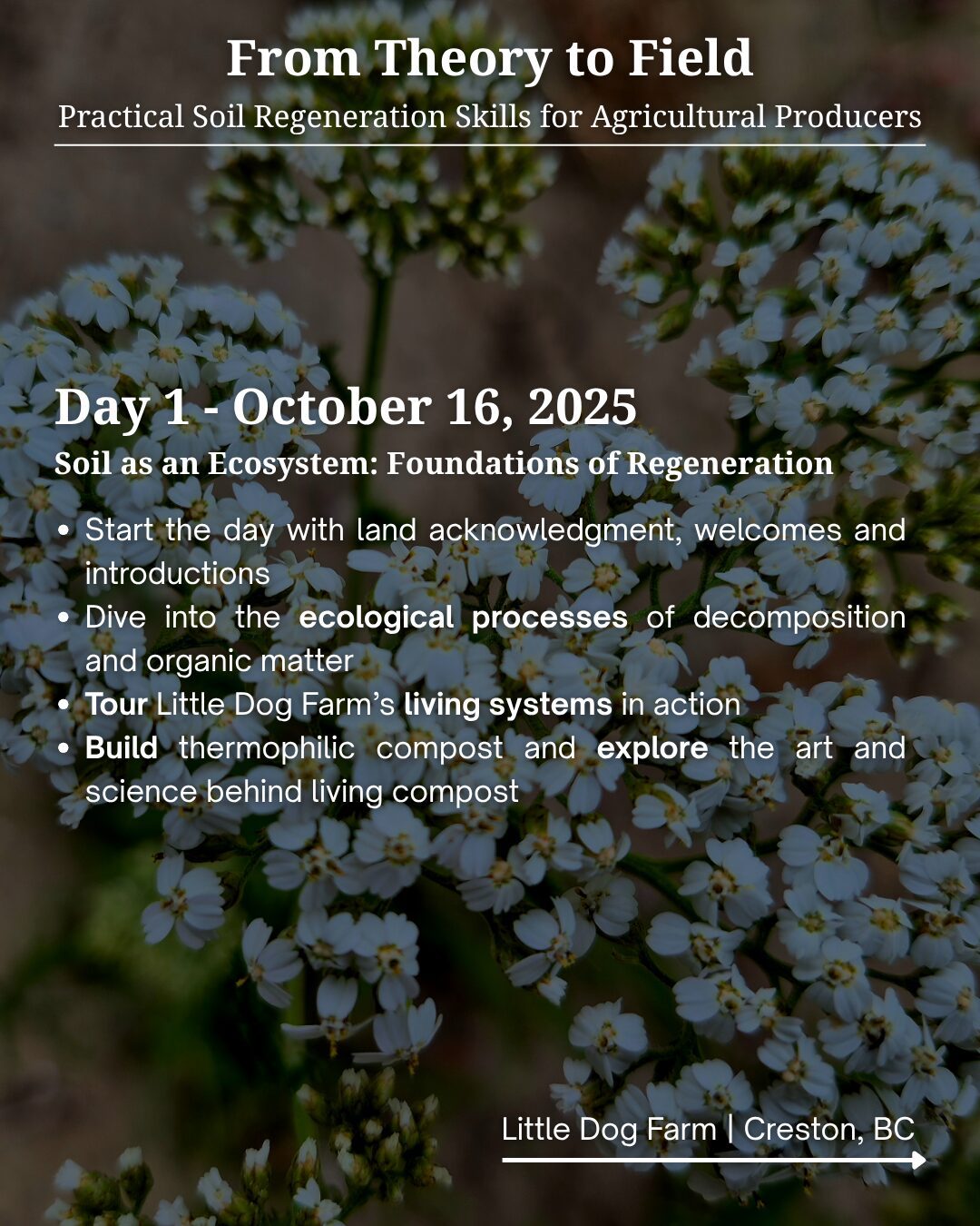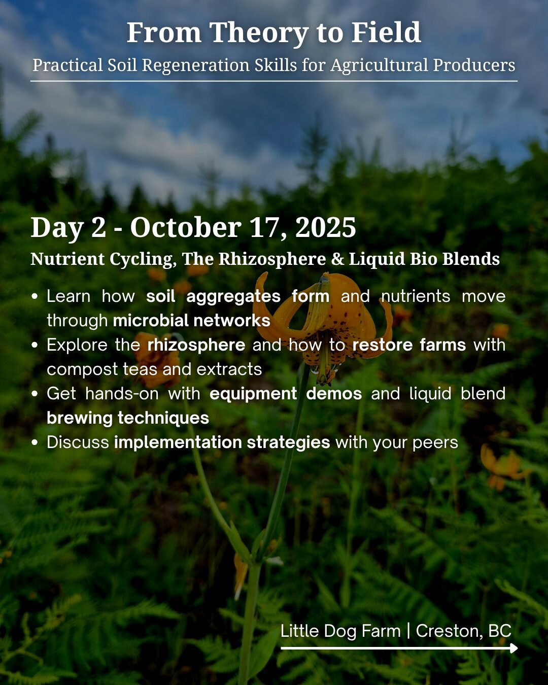 We want to invite you and your community to our upcoming intensive 3-day workshop happening October 16–18, 2025, at Little Dog Farm in Creston, BC.